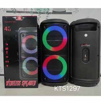 ลำโพงดอก 4 นิ้ว รุ่น KTS-1297 ให้การใช้งานจำนวน 2 ดอก แบบ 20 วัตต์ มีปุ่มเบสสำหรับการทำให้เสียงเบสแน่นมากขึ้น แถมไมค์แบบมีสายที่ปรับเสียงเอคโค่ได้ รองรับการใช้งานสัญญาณบลูทูธที่รับสัญญาณได้ไกลกว่า 10 เมตร มีช่องเสียบ USB, TF Card และ Micro SD Card ที่จะทำให้ฟังเพลง MP3 Music Player ได้สะดวก