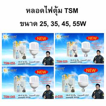 หลอดไฟตุ้มแสงขาวยี่ห้อ TSM แสงขาวสว่าง ขนาด 25, 35, 45, 55W