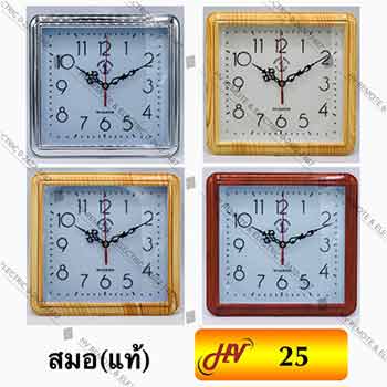 นาฬิกาแบรนด์สมอแบบติดผนังในนาม Anchor Brand ของแท้ รุ่น 25 ขนาด 10 นิ้ว ดีไซน์ด้วยทรงสี่เหลี่ยมจัตุรัสเท่ากันทุกด้าน ภาพรวมของการออกแบบเน้นความคลาสสิคย้อนยุค แต่ไม่ถึงกับโบราณจ๋า กรอบมีให้เลือกทั้งแบบกรอบทองและเงิน ซึ่งเหมาะสำหรับบ้านที่ชอบการตกแต่งแบบหรูหรา และแบบกรอบไม้ มีให้เลือกเป็นสีเข้มและสีอ่อน มองเห็นลายไม้ได้ชัดเจน