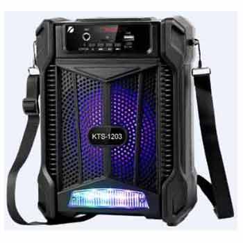 ลำโพงมีสายหิ้วรุ่น KTS-1203 มีดอก 1 ดอก ในขนาด 6.5 นิ้ว ให้กำลังขับ 10 วัตต์ รองรับสัญญาณบลูทูธที่ส่งสัญญาณได้ไกล 10 เมตร แบบไร้สิ่งกีดขวาง รองรับต่อการใช้งานคลื่น FM ที่จะมีช่องความถี่ 87.5-108.0 MHz และให้การตอบสนองช่องความถี่ 100 Hz ถึง 20 KHz มีแบตเตอรี่ภายในตัวที่จะจุพลังงานไฟได้ 1,200 mAh