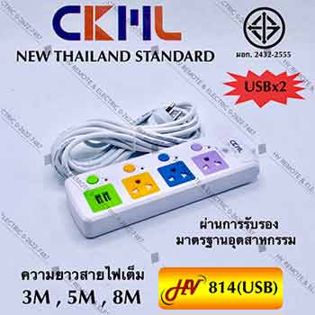 เลือกปลั๊กไฟทั้งที อย่าลืมดูบอดี้และสายไฟให้ดี แนะนำรางปลั๊กแบบใหม่ มีม่านกั้นจาก CKML รุ่น 814U ที่ได้รับมาตรฐาน มอก. และได้ผ่านมาตรฐานอุตสาหกรรมเป็นที่เรียบร้อย สำหรับรุ่นนี้มีช่องสำหรับเสียบสายชาร์จ USB มาให้ด้วย จำนวน 2 ช่องเสียบ และเต้ารับแบบธรรมดาสามตาอีก 3 ช่อง