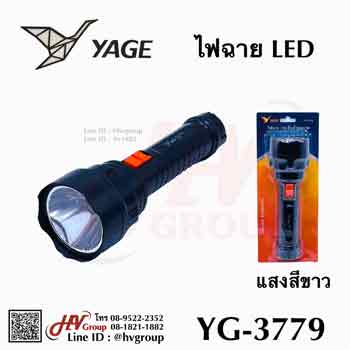 ไฟฉายกะทัดรัดยี่ห้อ YAGE รุ่น YG-3779 เป็นไฟฉายแบบหลอดไฟ LED ที่ให้แสงสีขาวสะอาด ส่องสว่างได้ในยามค่ำคืนด้วยวงกว้างชัดเจน สามารถชาร์จพลังงานกับไฟฟ้าได้ ให้กำลังไฟที่ 3 วัตต์ มีความจุของแบตเตอรี่อยู่ที่ 800 แอมป์ต่อชั่วโมง สามารถปรับระดับของความสว่างได้ 2 ระดับด้วยกัน คือ ความสว่างน้อยและความสว่างมาก