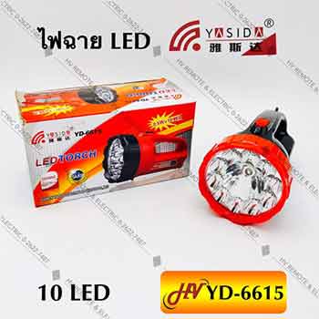 ไฟฉายยี่ห้อ YASIDA รุ่น YD-6615 เลือกใช้หลอดไฟ LED ที่ให้พลังงาน 0.5W โดยเป็นไฟดวงเล็กขนาดพิเศษจุอยู่ภายในถึง 10 ดวง พร้อมการใช้วัสดุสะท้อนแสงพิเศษที่สามารถทนทานต่อความร้อนได้ดี เป็นตัวช่วยรวมลำแสงของโฟกัสให้กระจายออกไปเป็นวงกว้าง จึงสามารถให้ความสว่างคมชัดในทุกพื้นที่