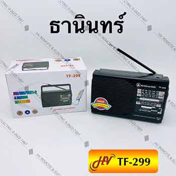 วิทยุยี่ห้อธานินทร์ TF-299 ที่ได้รับความนิยม ดีไซน์ขนาดพกพาได้ และแน่นอนว่าในด้านของรูปทรงยังคงเอาไว้ซึ่งความเป็นแบรนด์ในตำนานได้อย่างเต็มเปี่ยม การใช้งานมีการแทรกฟังก์ชั่นใหม่ ๆ เสริมเข้าไป นอกจากการฟังเพลงผ่านคลื่น FM และ AM แล้วนั้น ยังสามารถเชื่อมต่อผ่านช่องเสียบอื่น ๆ เพื่ออ่านไฟล์ MP3 ได้อีกด้วย โดยการเสียบกับช่อง AUX