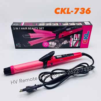Hair Straightener ได้ทั้งหนีบและม้วน ยี่ห้อ CKL รุ่น 736 รุ่นนี้ 2in1 จบครบในเครื่องเดียว แก้ปัญหาผมชี้ฟูให้กลับมาตรงสวย เติมวอลลุ่มให้เส้นผมได้ทุกวัน แกนทำความร้อนเคลือบเซรามิกอย่างดี ดีไซน์พิเศษหนีบตรงหรือจะม้วนผมให้เป็นลอนได้ตามต้องการ ขนาดแกน 26 มิลลิเมตร ได้ลอนเล็กสวยเป็นธรรมชาติ มีปุ่มเปิด และปิด ที่แสดงสถานะไฟฟ้า และแสดงสถานะอุณหภูมิขณะใช้งาน มีระบบตัดไฟอัตโนมัติ ป้องกันตัวเครื่องร้อนจนเกินไป