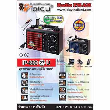 วิทยุสไตล์โมเดิร์นจากยี่ห้อ iPLAY ในรุ่น IP-800(27)U ใช้งานได้อย่างเป็นอเนกประสงค์ เพราะสามารถที่จะรับฟังได้ทั้งสัญญาณคลื่นเรดิโอวิดีโอและการฟังเพลงที่ชื่นชอบเป็นส่วนตัว เพราะรองรับได้ทั้งสัญญาณ FM และ AM รวมไปถึงสัญญาณต่างประเทศอย่าง SW มีช่องเสียบ USB และ TF card ที่คุณจะสามารถนำเพลงที่ชื่นชอบมาฟังได้อย่างสะดวก พร้อมการเชื่อมต่อ MP3 Music Player, สมาร์ทโฟน, เครื่องคอมพิวเตอร์ PC และ Notebook ไว้อย่างครบถ้วน มีช่อง AUX IN ขนาด 3.5 มิลลิเมตร ที่สามารถเสียบหูฟังไว้ฟังเพลงต่าง ๆ ได้อย่างเป็นส่วนตัว