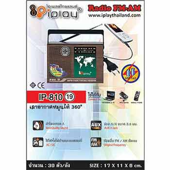 วิทยุรุ่นเล็ก พกพาสะดวกจากยี่ห้อ iPlay ในรุ่น IP-810(19) มีเสาอากาศหมุนได้ถึง 360 องศา ที่แม้จะมีขนาดเล็กแต่ก็สามารถให้เสียงที่มีความคมชัดสูงได้ดี ตัววิทยุผลิตมาผ่านมาตรฐาน มอก.เป็นที่เรียบร้อย พร้อมการใช้วัสดุที่มีความปลอดภัยและแข็งแรงทนทาน คุณจึงซื้อมาใช้งานได้อย่างมั่นใจ ขนาดของวิทยุรวมอยู่ที่ 17 x 11 x 56 เซนติเมตร ซึ่งจะมีขนาดที่ค่อนข้างกะทัดรัด