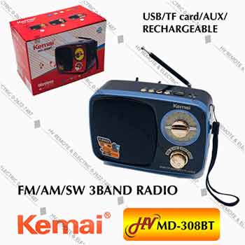 วิทยุฟังเพลงขนาดเล็กกะทัดรัดจากยี่ห้อ Kemai ในรุ่น MD-308BT เป็นวิทยุที่มาในสไตล์ Retro แบบพกพาได้สะดวก เพราะมีขนาดเล็กกะทัดรัดและน้ำหนักเบา โดยจะมีปุ่มการควบคุมและการหมุนที่ง่ายต่อความเข้าใจ สามารถรองรับได้ทั้งระบบ FM, AM และช่องสัญญาณต่างประเทศอย่าง sw1 กับ sw2 ได้อย่างสะดวก มีลำโพงขนาดเล็กแต่ให้เสียงแบบ Best Quality Sound ที่จะมีความคมชัดในทุกคลื่นเสียง