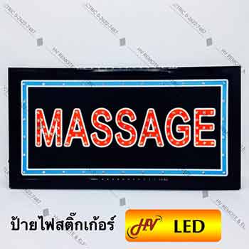 ป้ายไฟตัวหนังสือภาษาอังกฤษคำว่า MASSAGE เหมาะสำหรับผู้ทำธุกิจร้านนวดสปา เป็นป้ายไฟชนิดสำเร็จรูป พร้อมใช้งานได้เลยไม่ต้องติดตั้งให้ยุ่งยาก ใช้งานกับร้านนวดทั่วไปหรือร้านสปานวดผ่อนคลาย ไม่ว่าจะเป็นนวดแผนไทย นวดแผนโบราณ หรือจะเป็นร้านสปาแบบครบวงจรก็สามารถนำไปใช้จัดวางเป็นไฟหน้าร้านให้ลูกค้ามองเห็นได้ชัดเจน