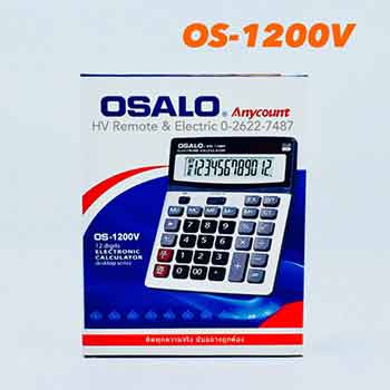 เครื่องคิดเลขโอซาโล รุ่น OS-1200V เป็นเครื่องที่ใช้ได้แบบ 12 Digits และให้การใช้พลังงาน 2 ระบบ คือ พลังงานแบตเตอรี่และพลังงานแสงอาทิตย์ ปุ่มกดเป็นพลาสติกที่มีความกว้าง จึงทำให้ใช้งานง่าย ส่วนหน้าปัดของเครื่องจะเป็น Extra Large Display ที่มองเห็นตัวเลขชัดเจน โดยเป็นตัวเลขดิจิตอลสีดำที่มีความหนา จึงดูได้ง่าย