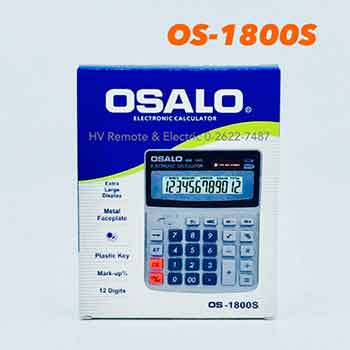 เครื่องคิดเลขโอซาโล รุ่น OS-1800S ใช้งานแบบ 12 Digits ที่คุณจะนำไปใช้นอกสถานที่ได้สะดวก เพราะน้ำหนักไม่มาก แต่ให้การใช้งานที่ครบครันในการคำนวณ โดยมีหน้าจอเป็นแบบ Extra Large Display ที่มองเห็นตัวเลขดิจิตอลสีดำได้ชัดเจน สามารถใช้งานได้ยาวนานด้วยการใช้พลังงาน 2 รูปแบบ คือ พลังงานแบตเตอรี่และพลังงานแสงอาทิตย์ เมื่อใส่ถ่านแล้วจะอยู่ได้ยาวนานหลายเดือน เพราะการกดใช้งานในแต่ละครั้ง จะไม่กินพลังงานมากเกินไป