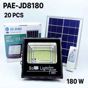 สปอร์ตไลท์โซล่ายี่ห้อ PAE รุ่น PAE-5750 สว่างขั้นสุดด้วยกำลังไฟสูงถึง 750 วัตต์ มาพร้อมเซ็นเซอร์ที่ช่วยให้คุณสะดวกสบาย ทำงานเองเมื่อถึงเวลากลางคืน ดวงไฟขนาดใหญ่จำนวน 8 ดวง ดีไซน์สวย ทันสมัย เหมาะสำหรับติดตั้งเอาไว้ภายนอกอาคาร ใช้พลังงานแสงแดด 100% ด้านในมีแบตเตอรี่คุณภาพสูง พร้อมแผงโซล่าเซลล์แบบ built-in ขนาด 5.5V/1.5W