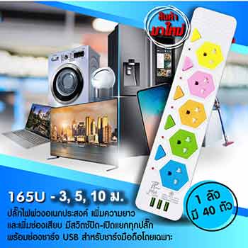มอบความคุ้มค่าอย่างครบวงจรด้วยรางปลั๊กเต้าเสียบสวิตช์แยก PAE รุ่น 165U สีสันที่โดดเด่นและสวยงาม ไม่เพียงแค่ดีไซน์ที่เน้นความโมเดิร์นทันสมัยเท่านั้น แต่ยังเลือกใช้สีระหว่างเต้าเสียบกับสวิตช์กดให้เป็นสีเดียวกันเพื่อง่ายต่อความเข้าใจเมื่อต้องเปิดใช้งาน มีไฟแสดงสถานะ และช่องสำหรับเสียบ USB ชาร์จได้ถึง 3 ช่องเสียบ ตัวเครื่องมีสายยาวให้เลือก 3 รุ่น คือ 3, 5 และ 10 ม.