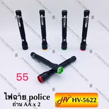 ไฟฉายตำรวจขนาดสำหรับพกพา รุ่น HV-5622 บอดี้ผลิตจากสแตนเลสอย่างดี น้ำหนักเบา กะทัดรัดสามารถพกติดกระเป๋าได้ ให้กำลังไฟแรงสูง สามารถปรับระดับความกว้างของลำแสงไฟให้กว้างหรือแคบได้ มีที่หนีบ สามารถหนีบกับกระเป๋ากางเกง กระเป๋าเสื้อ เข็มขัด ฯลฯ ได้ง่ายดาย ตัวกรอบด้านนอกมีหลายสีให้เลือก หลอดเป็นไฟแอลอีดีคุณภาพสูง อายุการใช้งานยาวนาน ดีไซน์เฉียบบางเบา แต่ทนทาน สามารถลุยฝนได้ อายุการใช้งานยาวนานกว่า 50,000 ชั่วโมง ความสว่างประมาณ 250 ลูเมน ใช้ถ่าน AA จำนวน 2 ก้อน ส่องสว่างได้ไกลประมาณ 1-2 เมตร ในที่มืดสนิท ด้วยลำแสงสีขาว