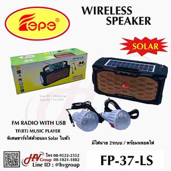 วิทยุแบบเอนกประสงค์จากยี่ห้อ FEPE ในรุ่น FP-37-LS มาพร้อมคุณสมบัติที่มีความครบครันเกือบทุกด้าน สามารถรับสัญญาณ FM และ AM ได้อย่างคมชัด มีช่องเสียบ USB, ช่องเสียบ AUX IN และช่องเสียบ TF Card ที่คุณนำเพลงต่าง ๆ ที่เก็บไว้มาฟังภายในวิทยุได้ตลอดทั้งวัน พร้อมการมีแผงโซล่าเซลล์ที่อยู่ด้านบนของวิทยุ จึงสามารถชาร์จเก็บพลังงานแสงอาทิตย์มาไว้ใช้งานนอกสถานที่ได้ยาวนานหลายชั่วโมง ทั้งยังชาร์จกับไฟบ้านได้ตามปกติ มีการแถมหลอดไฟและสายเสียบหลอดไฟมาให้ถึง 2 หลอดด้วยกัน