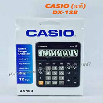 คิดเลขยี่ห้อคาซิโอ้แท้มีระบบ MU รุ่น DX-12B เป็นเครื่องแบบ 12 Digits ที่ให้หน้าจอ LCD แบบ Extra Large Display และมีตัวเลขเป็นดิจิตอลสีดำที่ให้ความคมชัด ตัวเครื่องมีรูปทรงที่ทันสมัยและมีความโค้งมน จึงนำไปใช้งานนอกสถานที่ได้สะดวกและดูดี ปุ่มกดสามารถกดได้ง่ายด้วยการเว้าที่ปุ่มเล็กน้อย เพื่อให้รองรับต่อสรีระปลายนิ้ว จึงทำให้การคิดคำนวณตัวเลขเป็นอย่างไหลลื่น