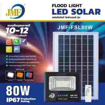 ไฟโซล่าเซลล์สปอร์ตไลต์ยี่ห้อ JMF ขนาด 80 วัตต์ รุ่น FSL80W ปรับการใช้งานได้ทั้งหมด 3 แสงในเครื่องเดียว มีรีโมทสำหรับควบคุม แผงโซล่าฯ ขนาดใหญ่ สะดวกกับการใช้งาน ติดตั้งง่าย ทั้งตัวไฟและแผง ใช้งานต่อเนื่องได้ 10-12 ชั่วโมง แบตเตอรี่อึดทนนาน สว่างได้ยันเช้า