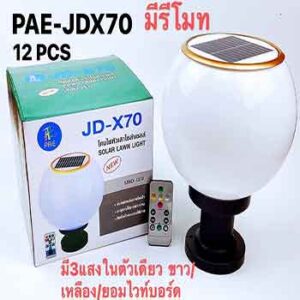 จึงไม่ต้องกังวล เพราะควบคุมการใช้งานด้วยรีโมทคอนโทรลระยะไกลได้สูงถึง 5 เมตร การกระจายแสงสม่ำเสมอ ส่องสว่างรอบทิศทาง ชิป SMD ให้ความสว่างมากยิ่งขึ้น ตัวเครื่องกันน้ำและฝุ่นลอง มาตรฐาน IP67 ตัวรีโมทยังสามารถตั้งเวลาปิดได้ โดยมีแผงโซล่าเซลล์เป็นชนิดฝัง ใช้งานง่าย ไม่เกะกะ ติดตั้งสะดวกด้วยตัวเอง ชั่วโมงการทำงานสูงสุดถึง 12 ชั่วโมง ใช้พลังงานแสงอาทิตย์ทั้งหมด ไม่ต้องกังวลว่าจะต้องใช้ไฟบ้าน