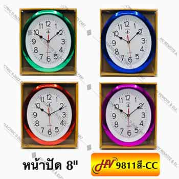 นาฬิกาแบบแขวนกับผนังจากยี่ห้อ Suntime ในรุ่น 9811 ขนาดหน้าปัด 8 นิ้ว ที่มีความโดดเด่นในเรื่องของขอบนาฬิกาแบบขึ้นเงา เป็นการชุบเงาที่มีรายละเอียดดีและให้สีสันผสมผสานกันอย่างลงตัว โดยมีสีของขอบนาฬิกาให้เลือกถึง 4 สี คือ สีเขียวมิ้น, สีน้ำเงิน, สีแดง และสีชมพูเข้ม ส่วนหน้าปัดนาฬิกาด้านในจะเป็นสีขาว ตัวเลขของการบอกเวลาและขีดบอกนาทีจะเป็นสีดำ เข็มนาฬิกาบอกชั่วโมงและบอกนาทีจะเป็นสีดำด้วยเช่นกัน