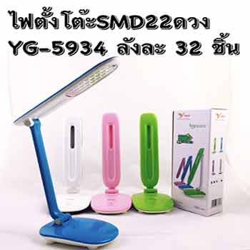 โคมไฟแบบตั้งโต๊ะได้ ดีไซน์เก๋จากยี่ห้อ YAGE ในรุ่น YG-5934 ใช้หลอดแบบ SMD 22 ดวง ที่ให้ความสว่างปลอดภัย ใช้ได้อย่างสะดวกด้วยการชาร์จกับไฟบ้านได้ตามปกติ ให้ความจุของแบตเตอรี่ 1,300 mAh ชาร์จไฟได้สูงสุดถึง 200 ครั้ง อุณภูมิของหลอดไฟมีเพียง -10 องศาเซลเซียส ถึง 45 องศาเซลเซียส จึงไม่ก่อให้เกิดความร้อนสูงอย่างแน่นอน ใช้กำลังไฟขนาด AC 0.1A 0.8W กำลังของหลอดไฟอยู่ที่ 2.2 วัตต์ ใช้แรงดันกระแสไฟฟ้าขนาด AC90V-240V
