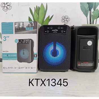 ลำโพง wireless รุ่น KTX-1345 ให้ดีไซน์โมเดิร์นขนาดกะทัดรัด มีดอกขนาด 6 นิ้ว เป็นแบบไร้สายที่เชื่อมต่อสัญญาณบลูทูธได้ในระยะไกลถึง 10 เมตร แม้จะมีขนาดเล็ก แต่ให้เสียงดีดังไกลและให้เบสที่มีความหนักแน่น ใช้งานง่าย มีระบบควบคุมด้านหน้า ในขณะที่เล่นเพลงต่าง ๆ จะมีแสงไฟหลากหลายสี จึงจะทำให้เพลิดเพลินมากขึ้น